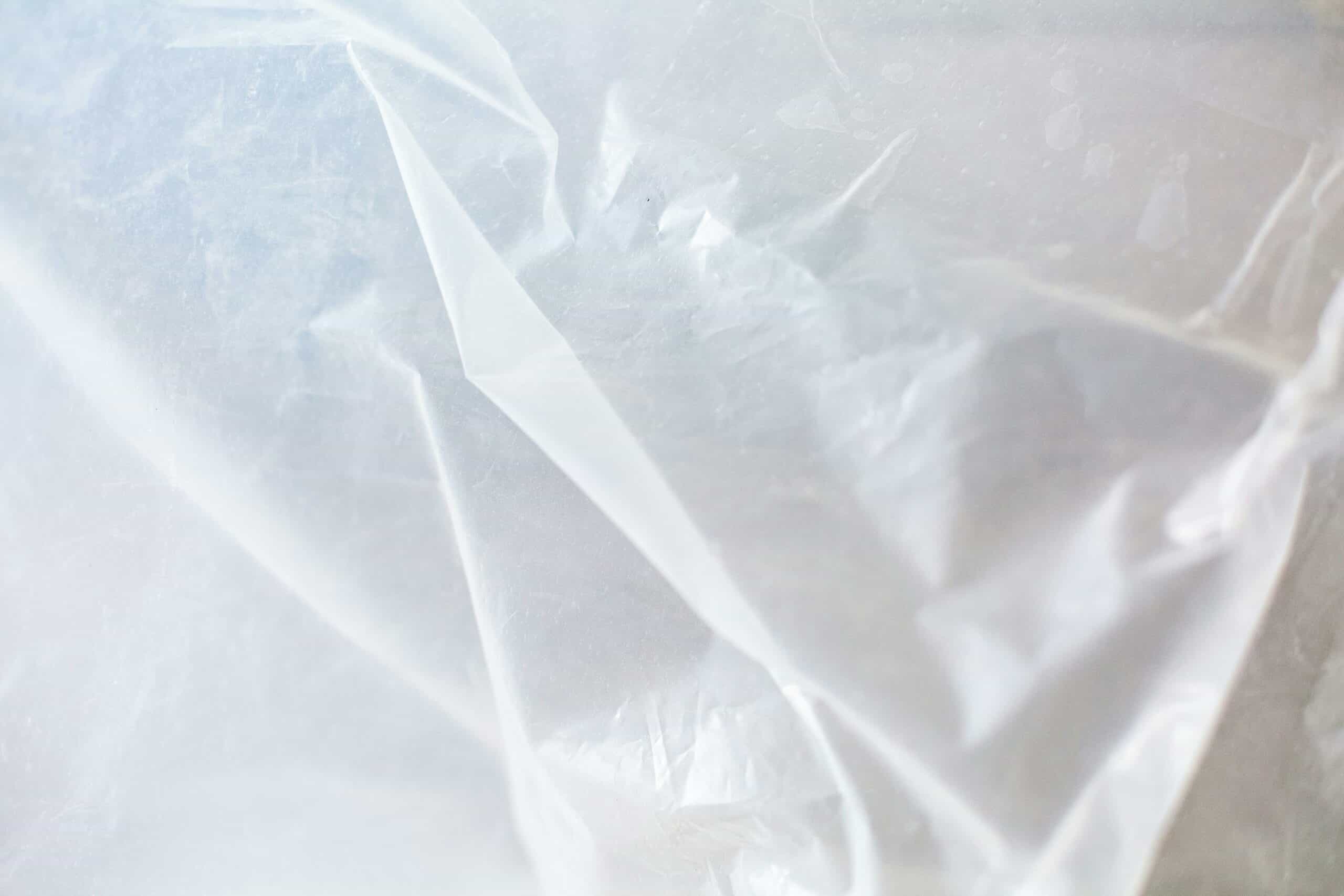 Sachets en plastique souple de 50L, bleus ou blancs, contenant des emballages