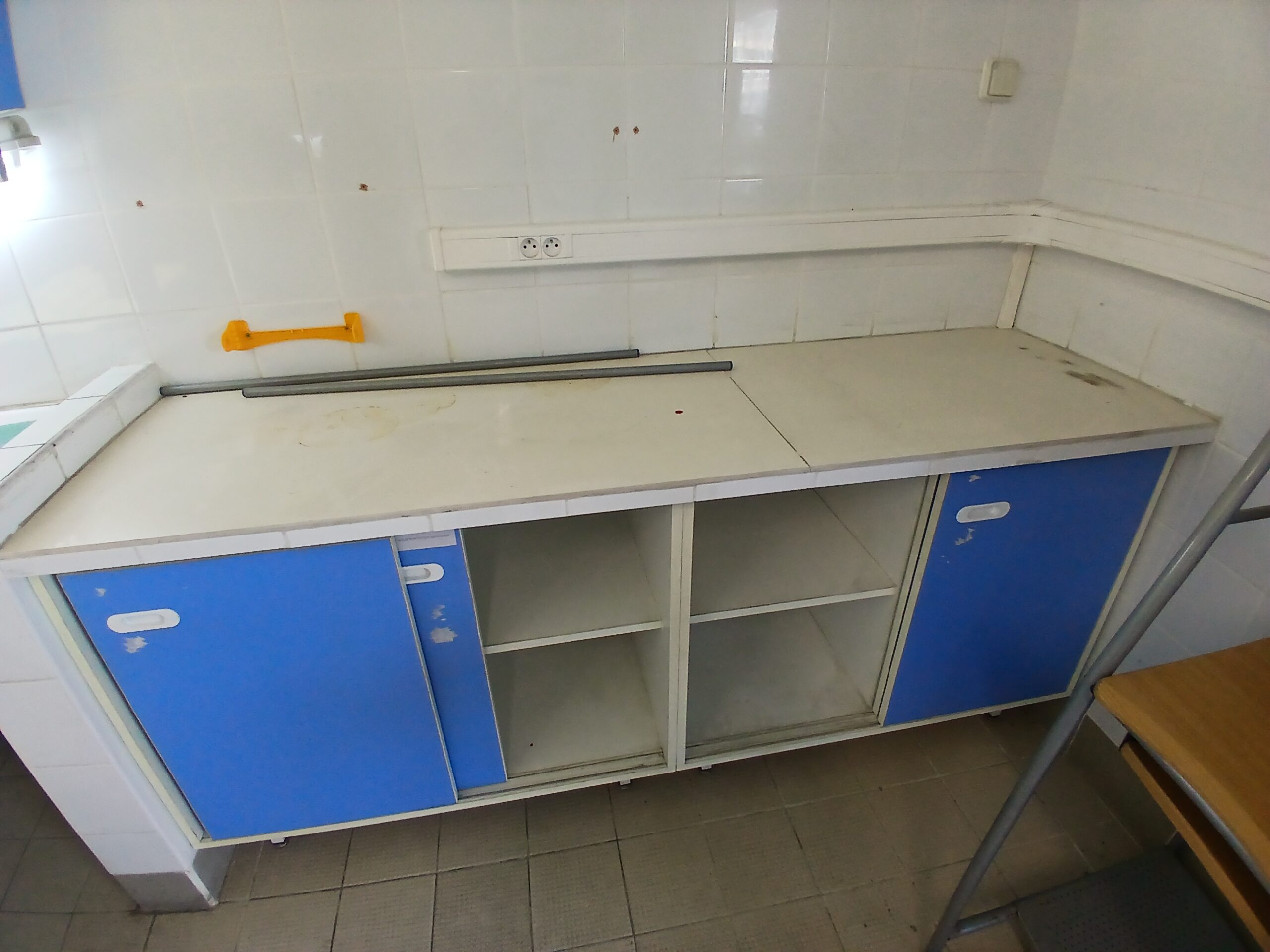 Placard avec deux portes coulissantes. Installé sous une paillasse fixée au mur (petits travaux pour…