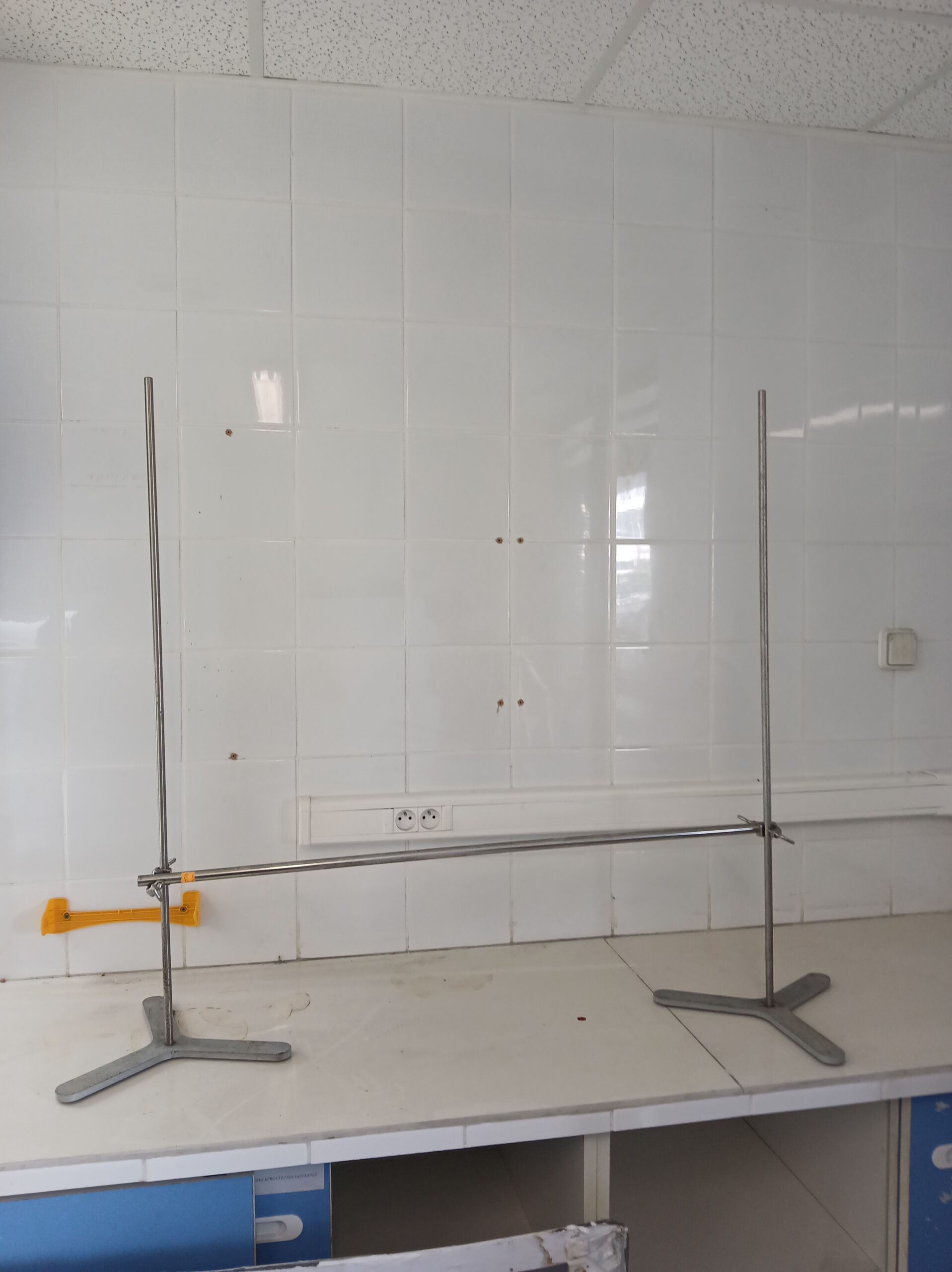 Support de laboratoire en métal, double tiges, avec barre latérale.