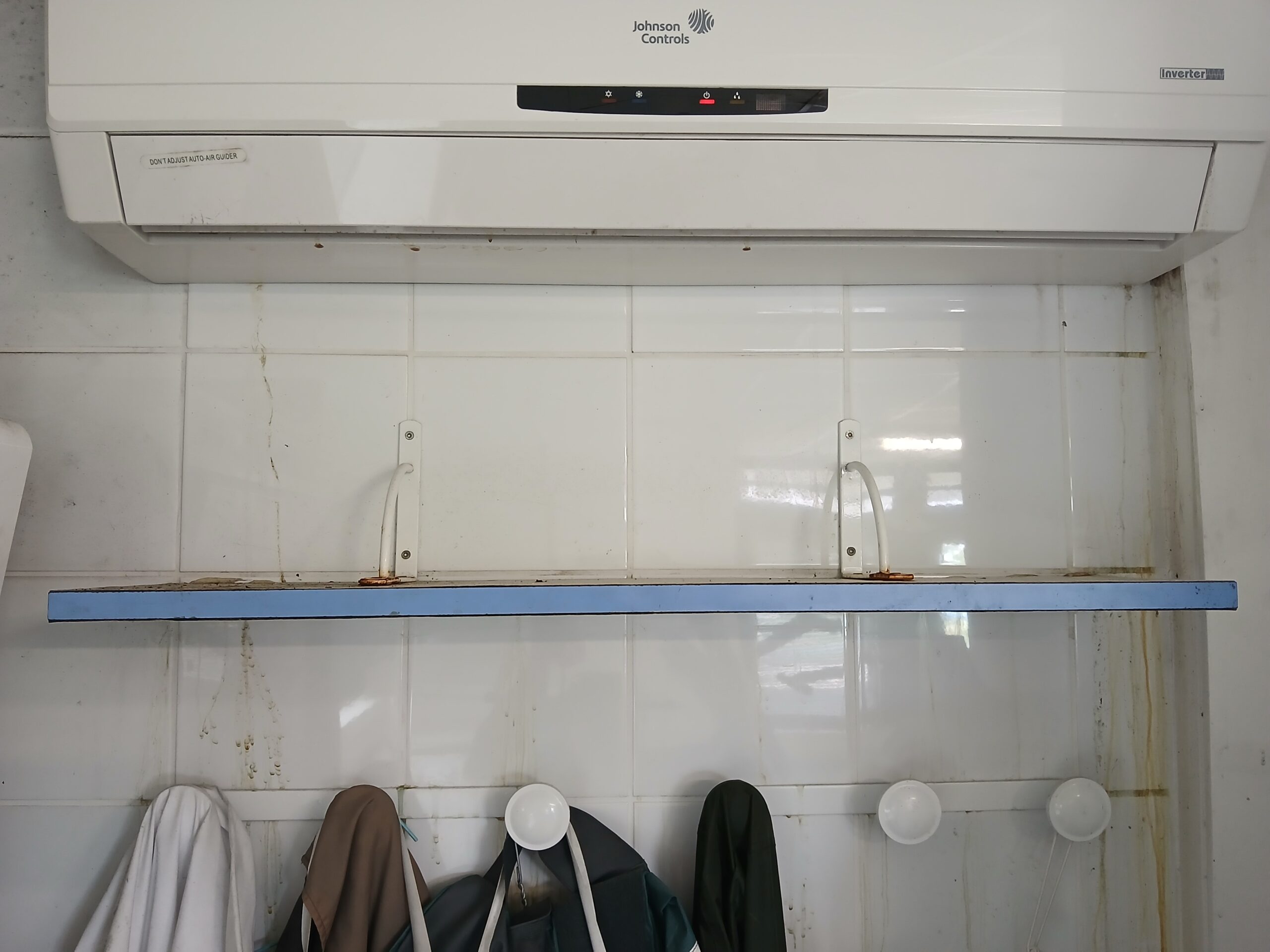 Petite étagère fixée au mur (prévoir de la défixer lors de la récupération).