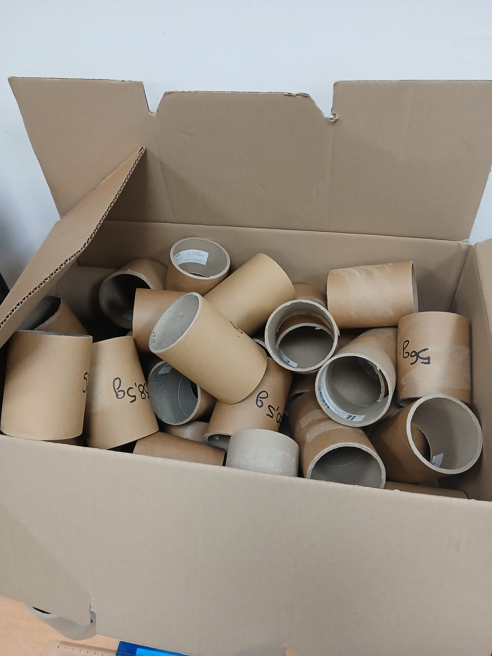 Mandrins (tubes en carton) issus de l’étiquetage dans l'industrie du rhum Stockés à l'abri de…